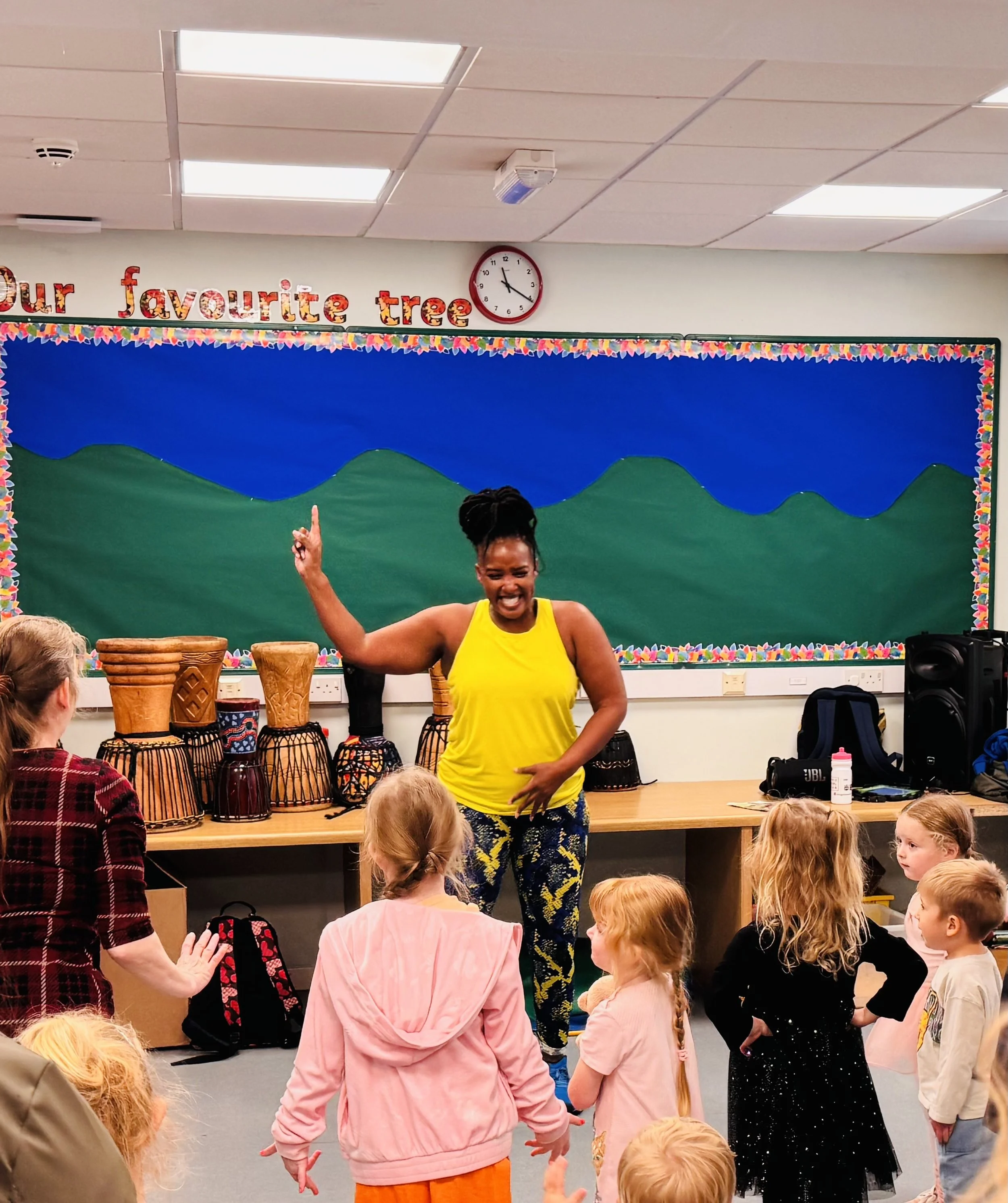 Our inclusive drumming workshops invited families of all ages to pick up a djembe and get involved in the music-making. Together, we explored rhythm through play - clapping, call-and-response, and group drumming that had the whole room smiling (and giggling!). Drumming has a unique way of breaking down barriers, helping people connect across generations, and giving children and adults the confidence to join in.