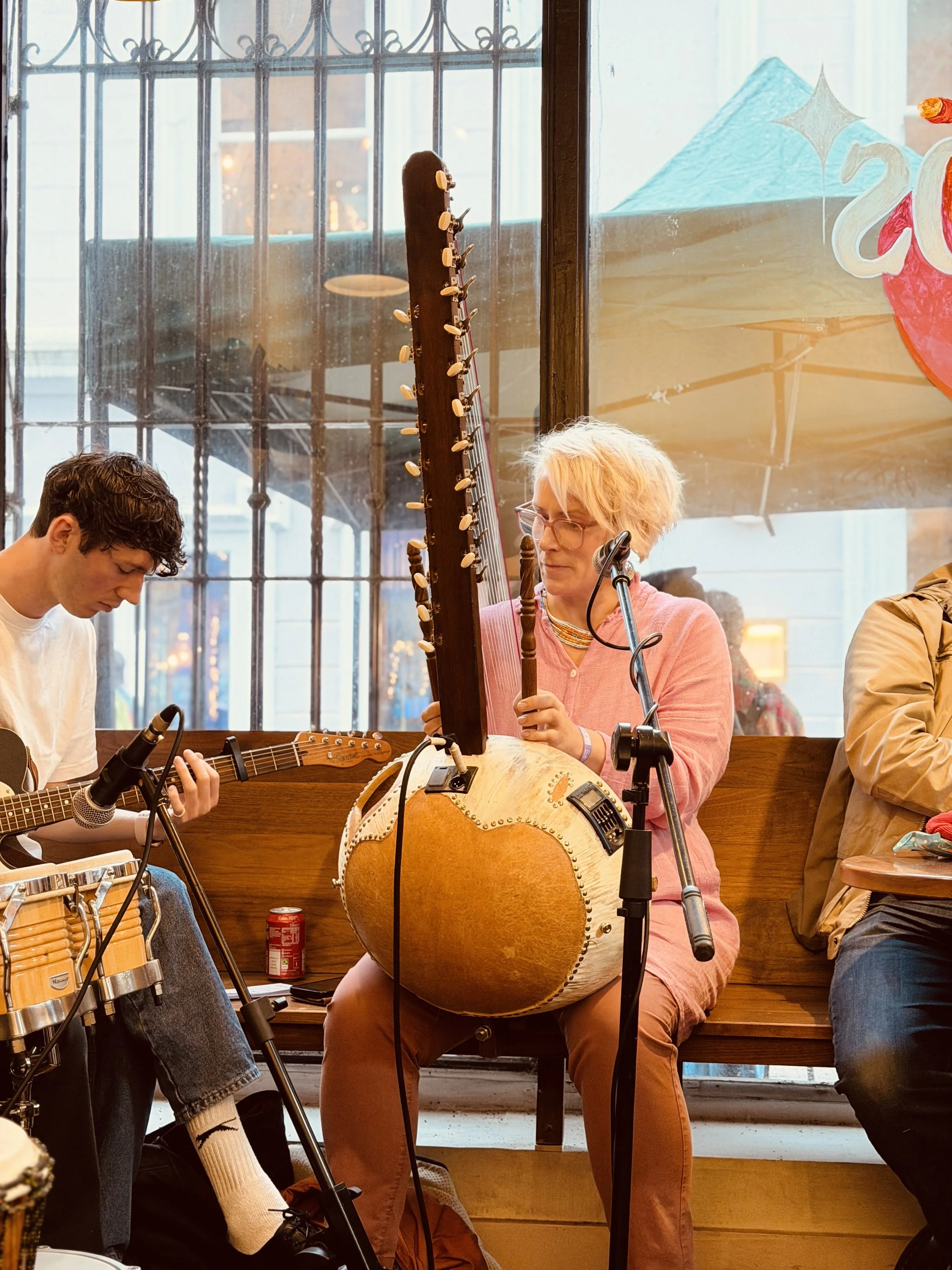 This year, BeatFeet’s CEO Jude brought the unique sounds of the kora to the festival, performing alongside fellow musicians, Tom Shawcroft (Guitar)) and Andy (percussion). The kora, a traditional West African harp, has a distinctive and soulful tone that connected beautifully with the diverse programme of acts across the day. The performance highlighted how music can transcend boundaries, honour heritage and bring people together through shared experience.